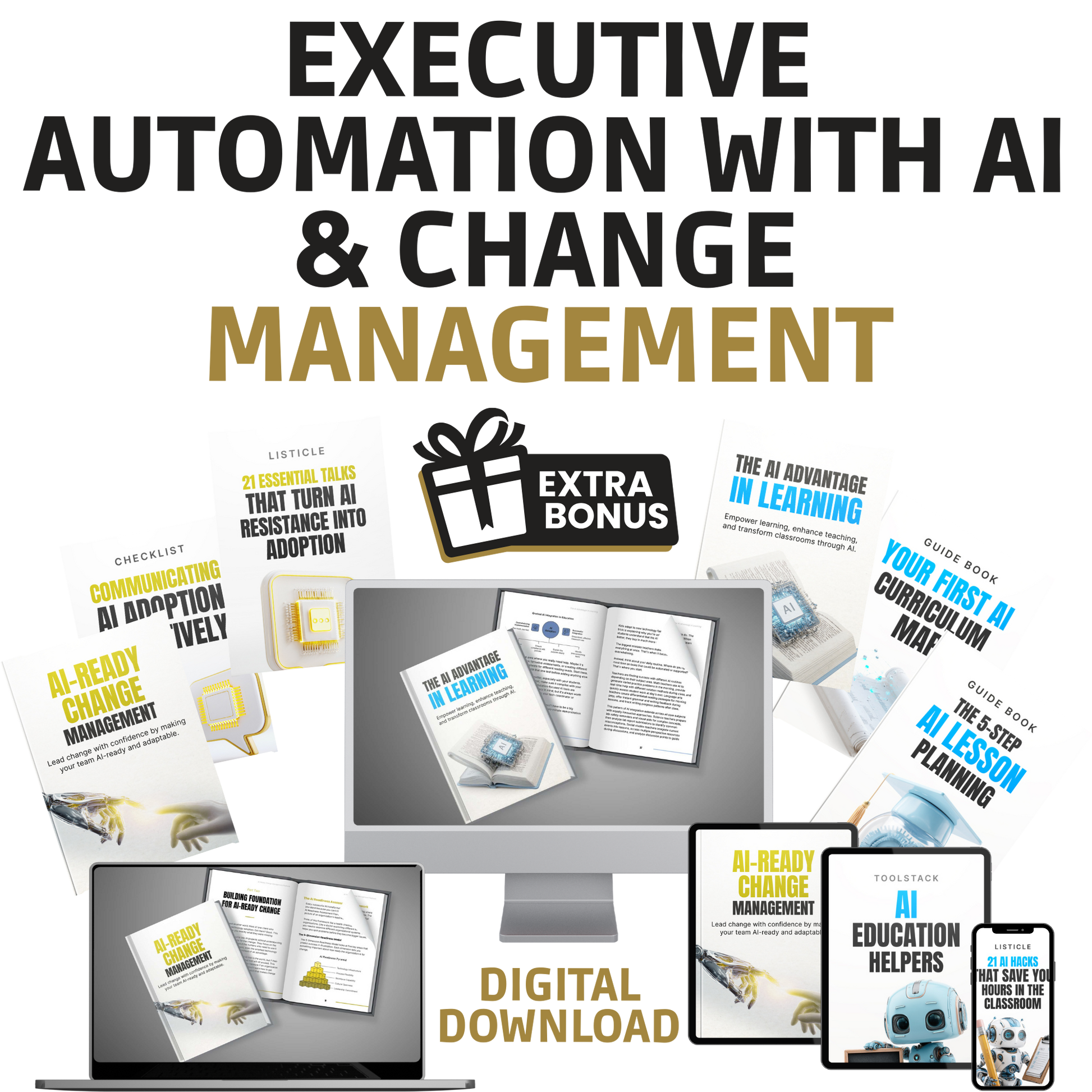 This bundle shows you how to introduce AI without triggering fear, sabotage, or passive resistance — whether you’re running a business, a team, or consulting clients who are secretly terrified of what’s coming.